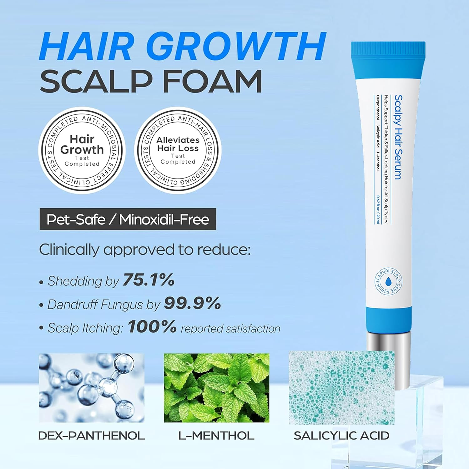 - L-Mentol: Proporciona una sensación refrescante inmediata, lo que ayuda a calmar la irritación y mejorar la microcirculación en el cuero cabelludo.