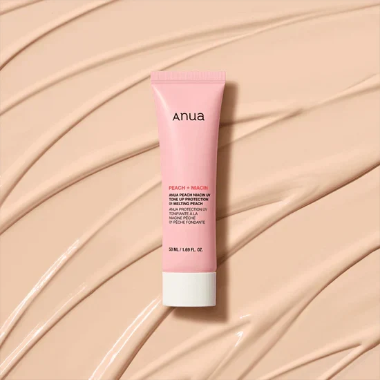 La Anua Peach Niacin UV Tone Up Protection 01 Melting Peach es un protector solar multifuncional ligero con SPF50+ PA++++ que protege contra los rayos UV, ilumina el tono de la piel y funciona como prebase de maquillaje.